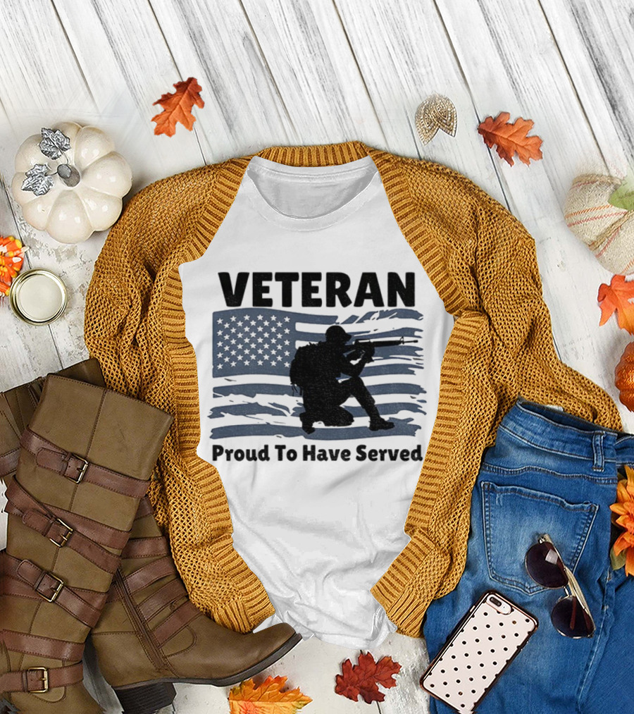 Veteran Proud To Have Served American Flag And Soldier Kneeling T-Shirt