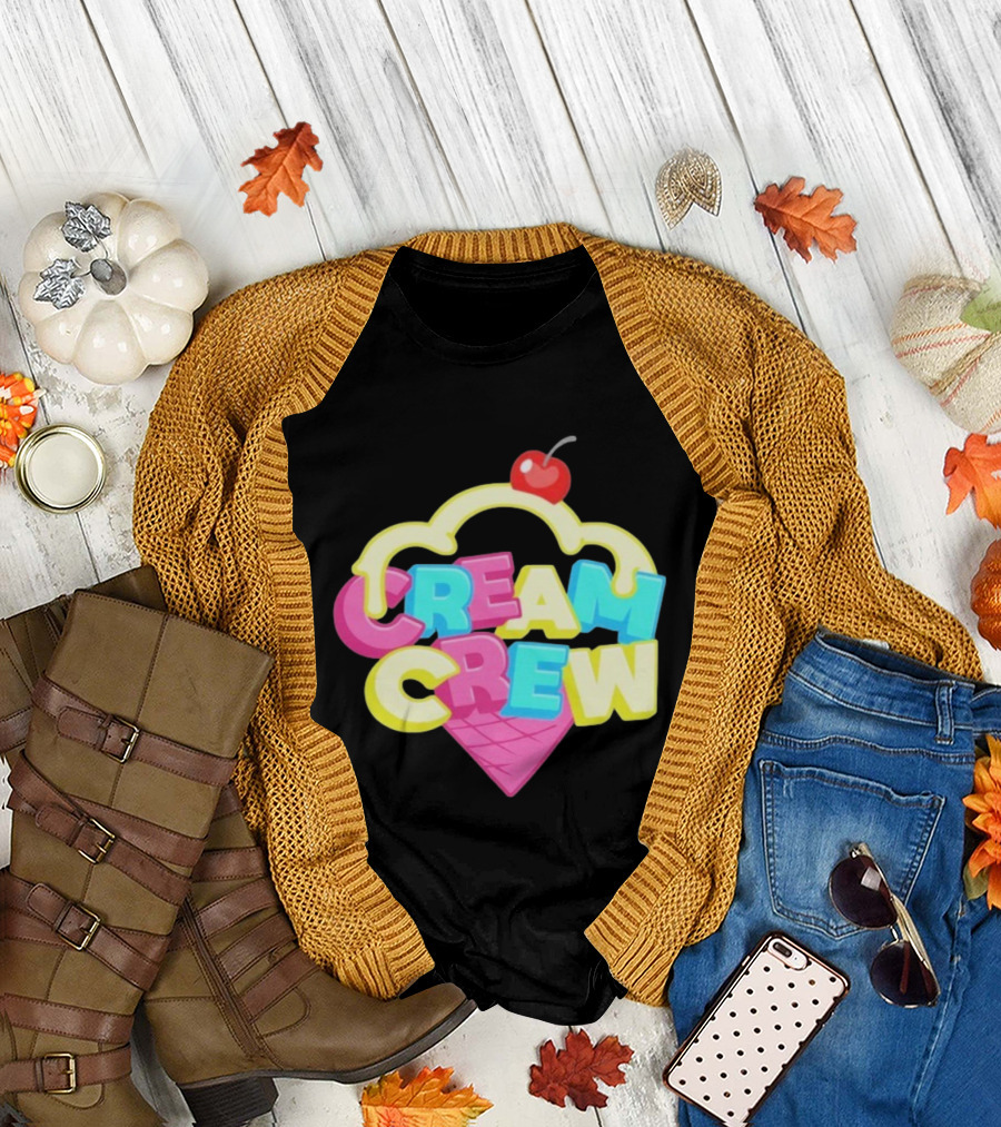 CREAM CREW Ice Cream Cone Cherry Top Colorful Text T-Shirt