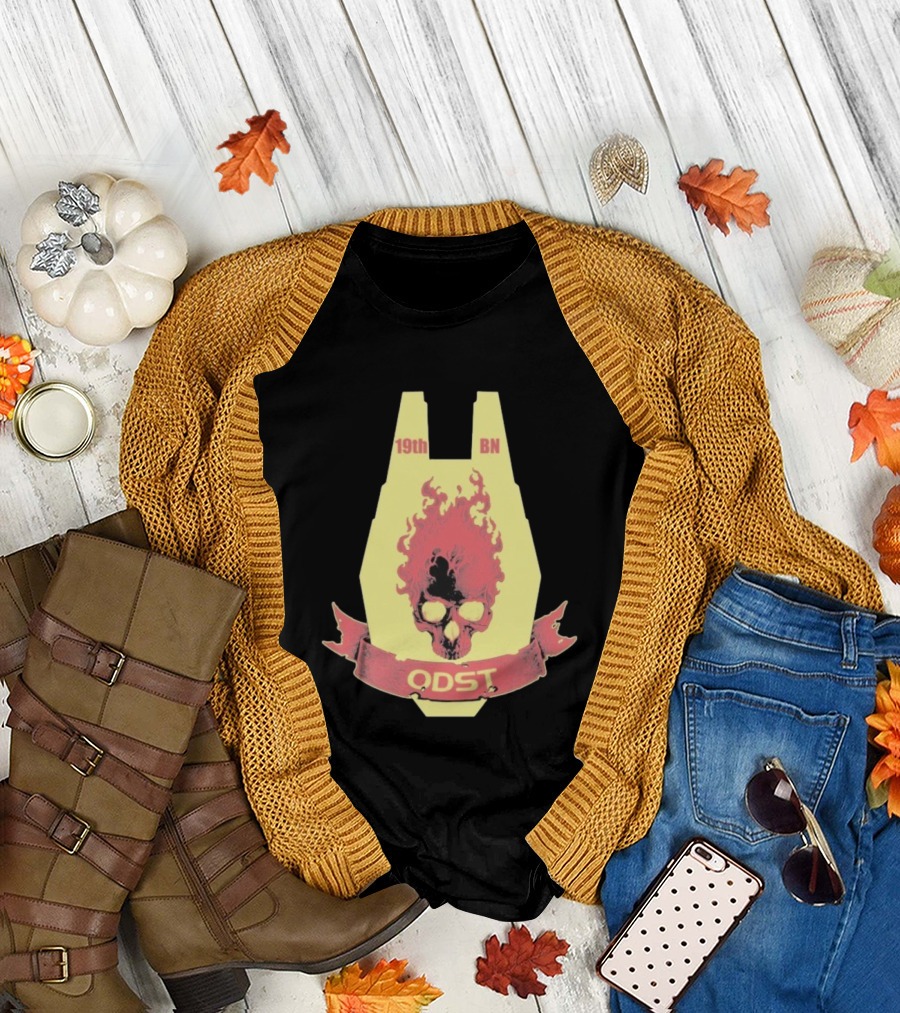 The 19th BN ODST Flaming Skull Emblem T-shirt is designed for everyday wear and a consistent fit. Fabric is pre-shrunk ring-spun cotton with durable stitching. See the size chart below for exact measurements.
