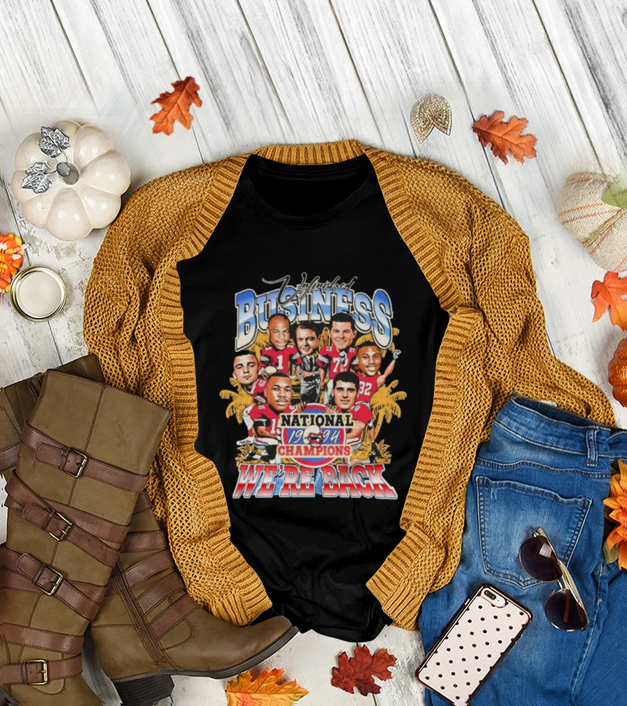 Unfinished Business We're Back National Champions 1994 Cartoon Football Team Players Palm Trees T-Shirt
