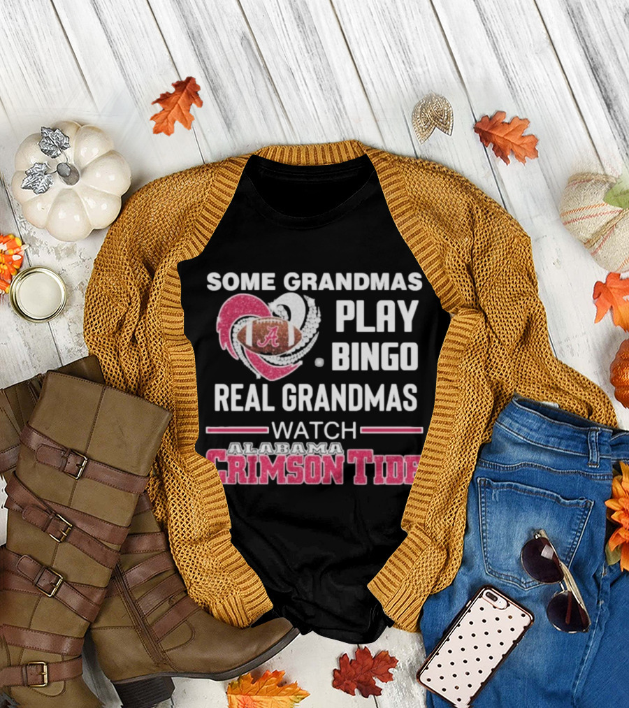 Some Grandmas Play Bingo Real Grandmas Alabama Crimson Tide Diamond Heart T-Shirt