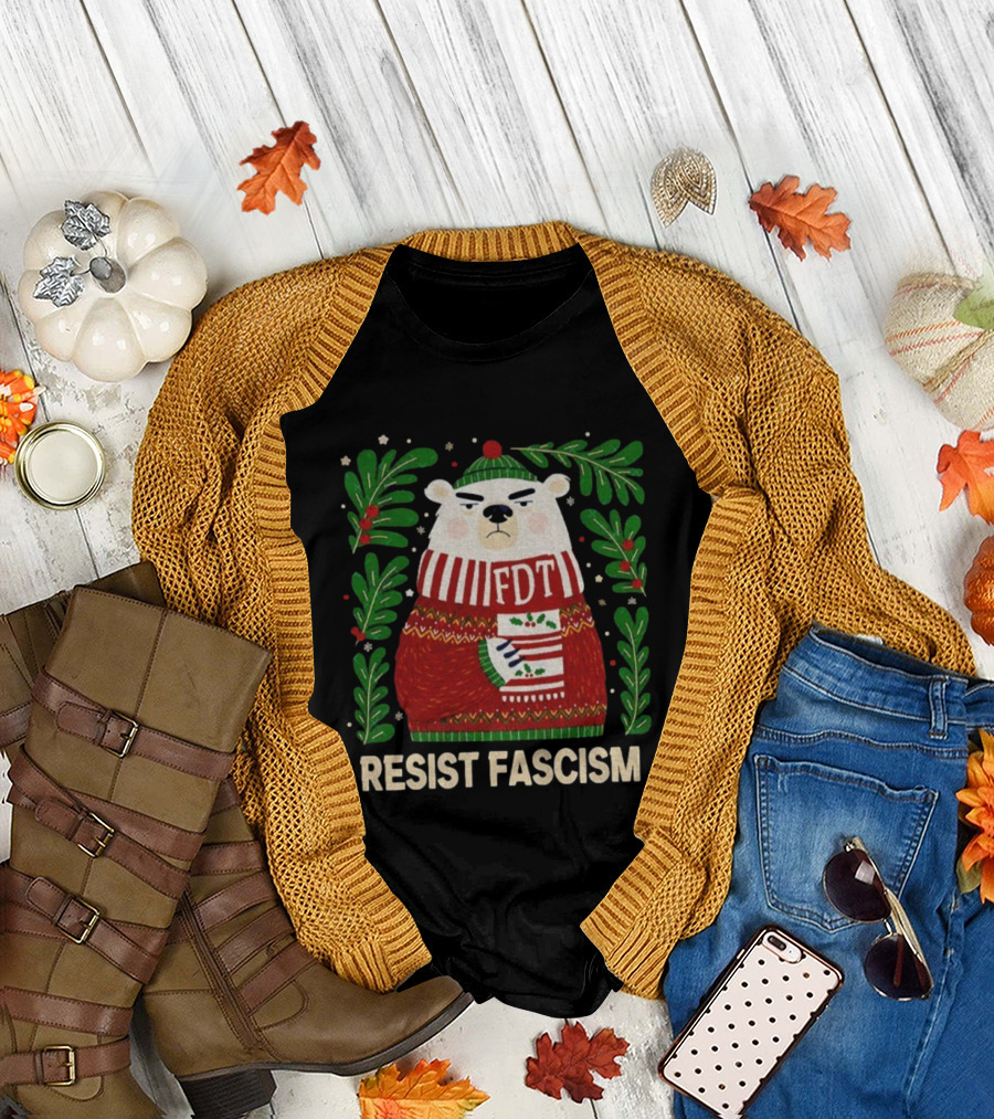 Resist Fascism FDT Bear In Christmas Sweater Anti-Trump T-Shirt