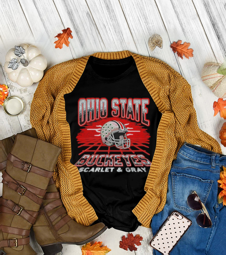 Ohio State Buckeyes Scarlet Gray Retro Neon Grid Football Helmet T-Shirt