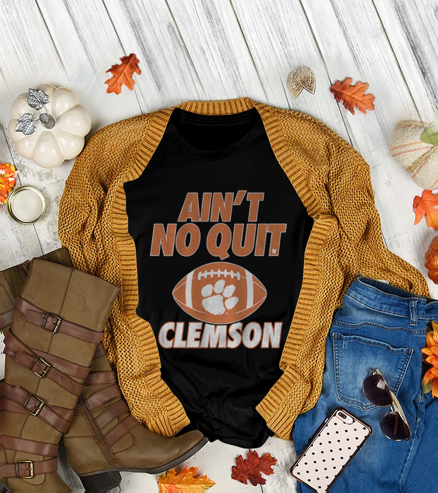 Ain't No Quit Clemson Tigers Football Paw Print Football Design T-Shirt