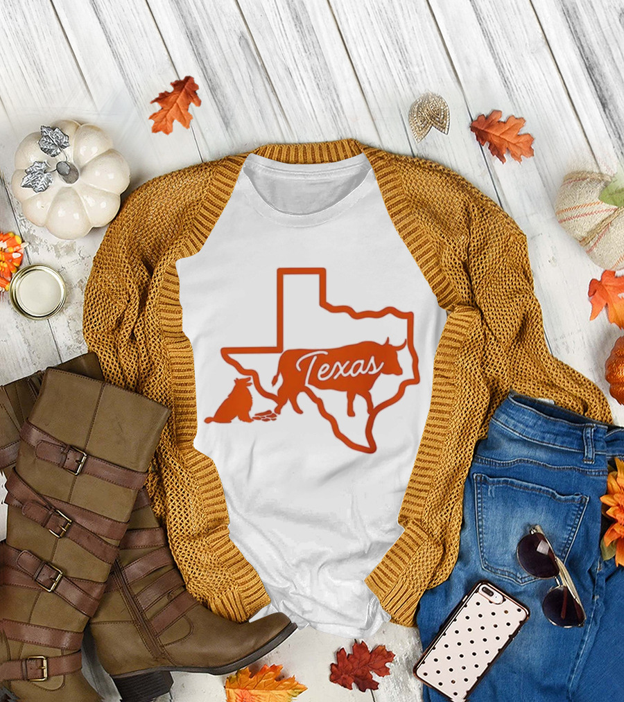 Texas Longhorns Rivalry Map Outline With Steer And State Silhouette Design T-Shirt