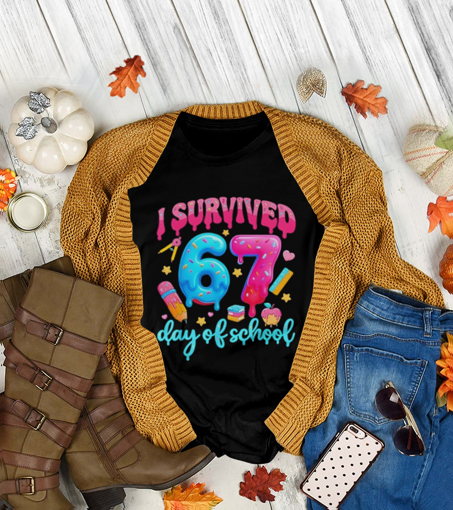 I Survived 67 Days Of School Pencil Cupcake Book Stars Hearts T-Shirt