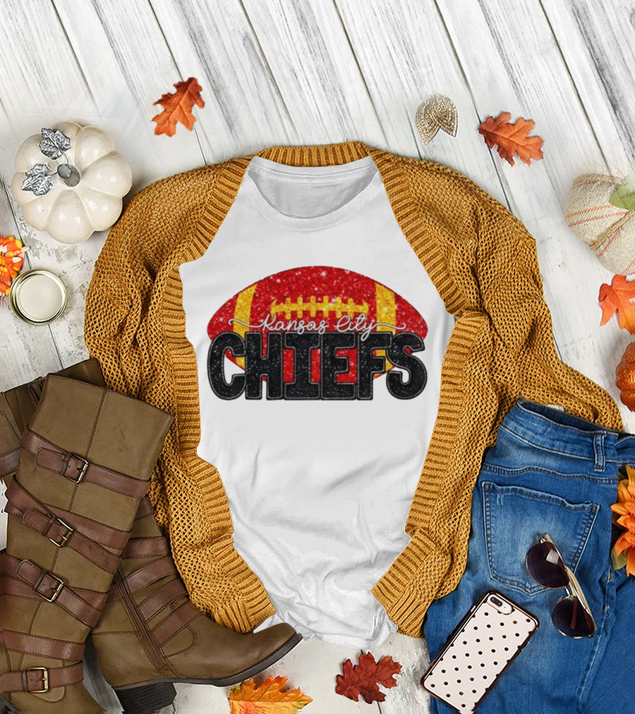 Kansas City Chiefs Faux Glitter NFL Football Game Day Fan Wear T-Shirt