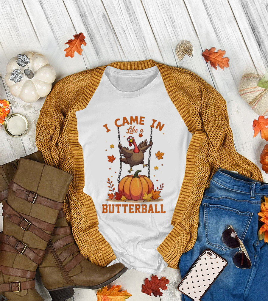 Thanksgiving Turkey Humor I Came In Like A Butterball Pumpkin Swing Fall Leaves T-Shirt