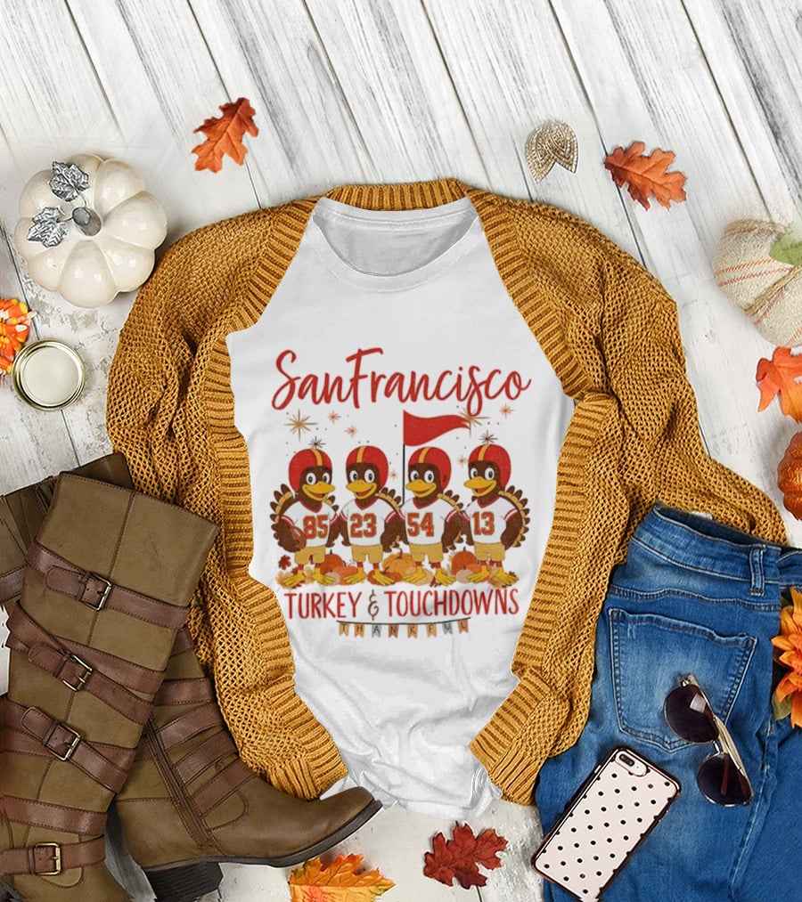 San Francisco 49ers Turkey And Touchdowns Thankful Thanksgiving Football T-Shirt