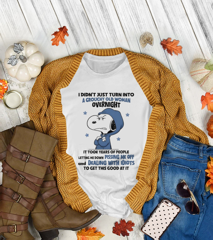 Snoopy Grouchy Old Woman Overnight Pissing Me Off Dealing With Idiots T-Shirt