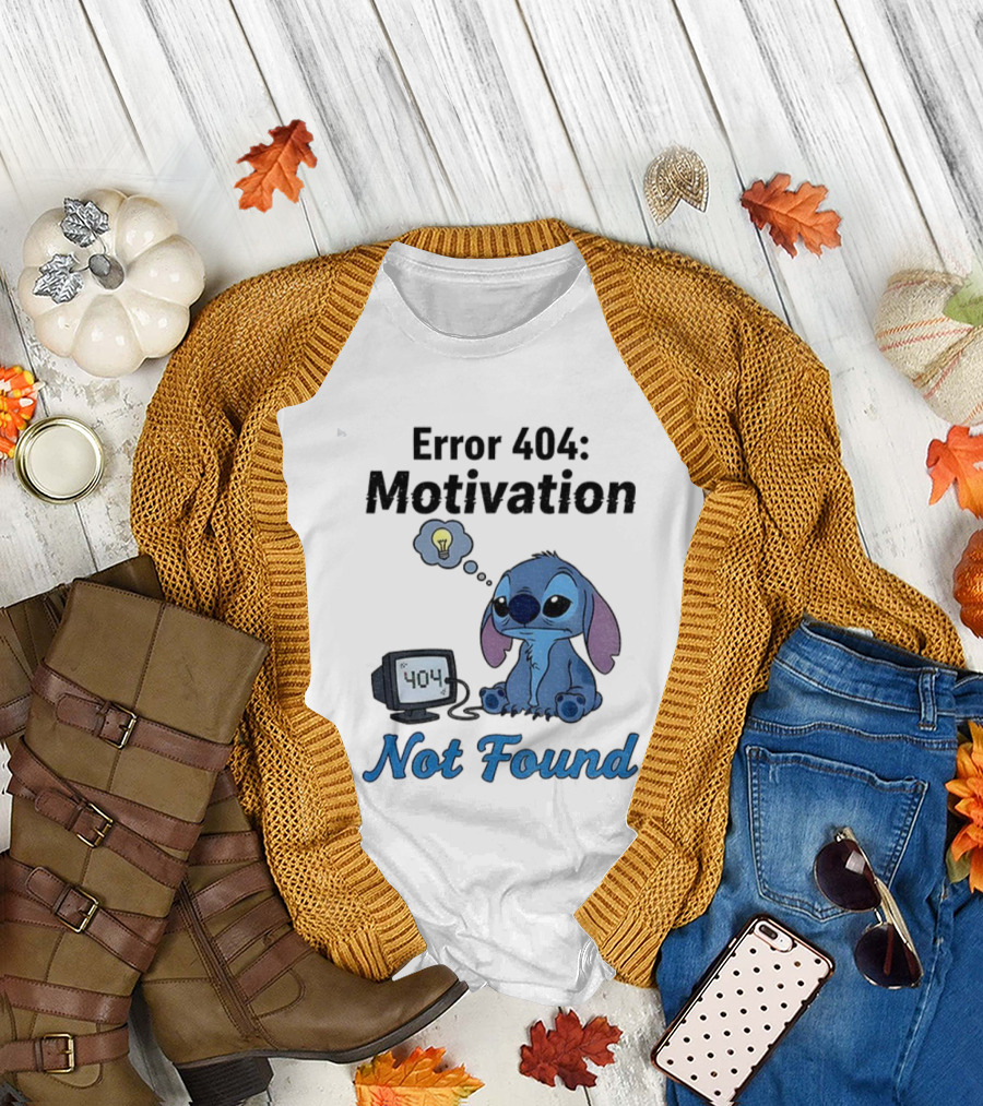 Sad Stitch Error 404 Motivation Not Found T-Shirt