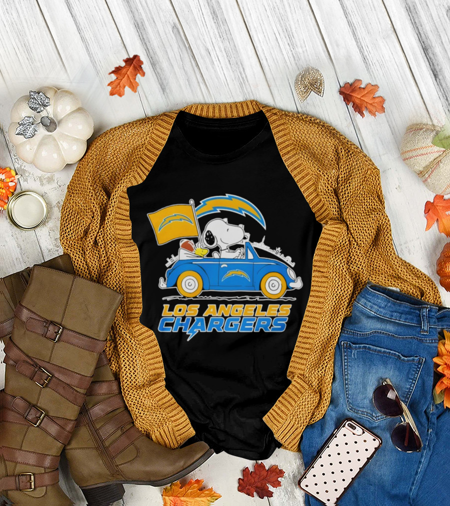 Los Angeles Chargers Snoopy Woodstock Driving Car Peanuts NFL Logo T-Shirt