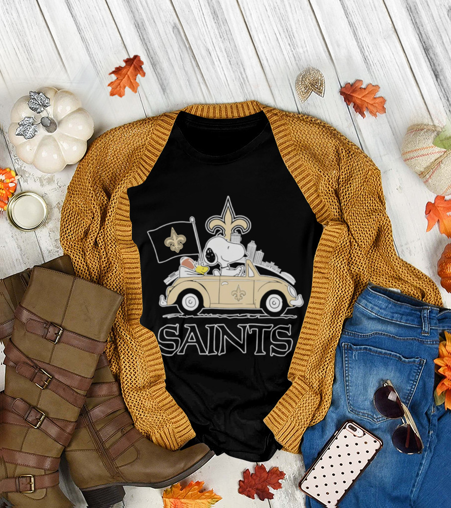 New Orleans Saints Snoopy Woodstock Car Driving Football Fan T-Shirt