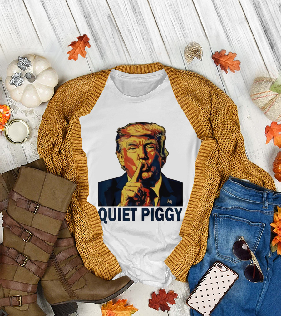 The QUIET PIGGY Shushing Gesture T-shirt is designed for everyday wear and a consistent fit. Fabric is pre-shrunk ring-spun cotton with durable stitching. See the size chart below for exact measurements.