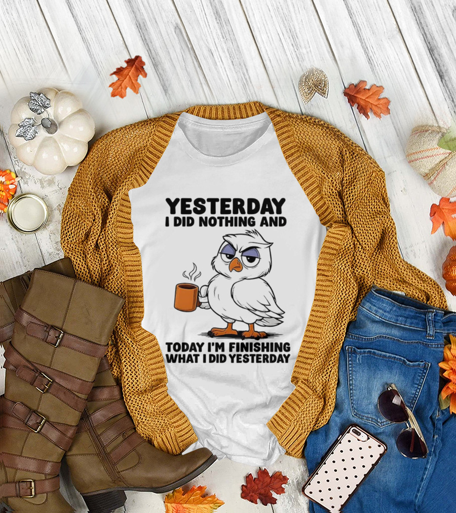 Yesterday I Did Nothing Owl Coffee Today I'm Finishing What I Did Yesterday T-Shirt