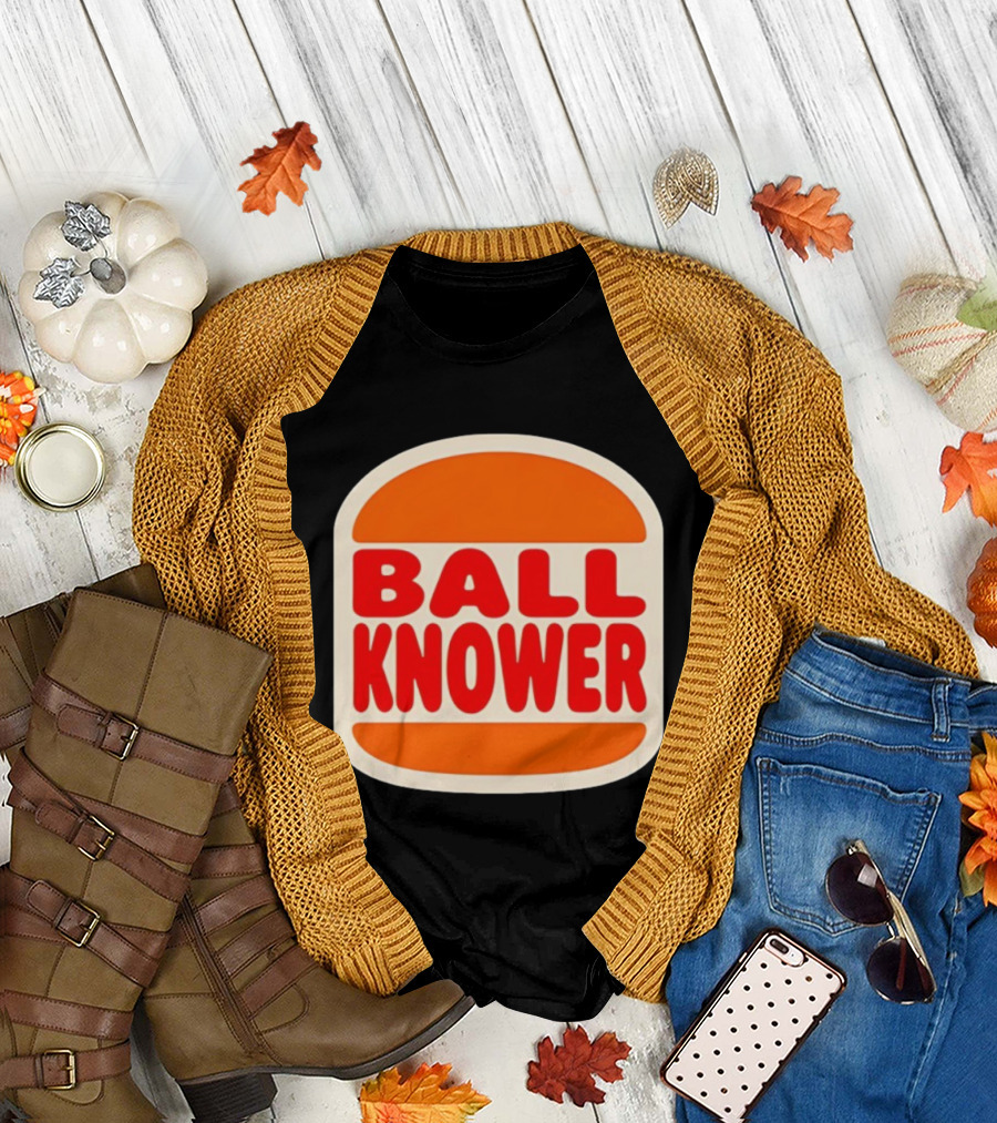 The Ball Knower Parody Fast Food Logo T-shirt is designed for everyday wear and a consistent fit. Fabric is pre-shrunk ring-spun cotton with durable stitching. See the size chart below for exact measurements.
