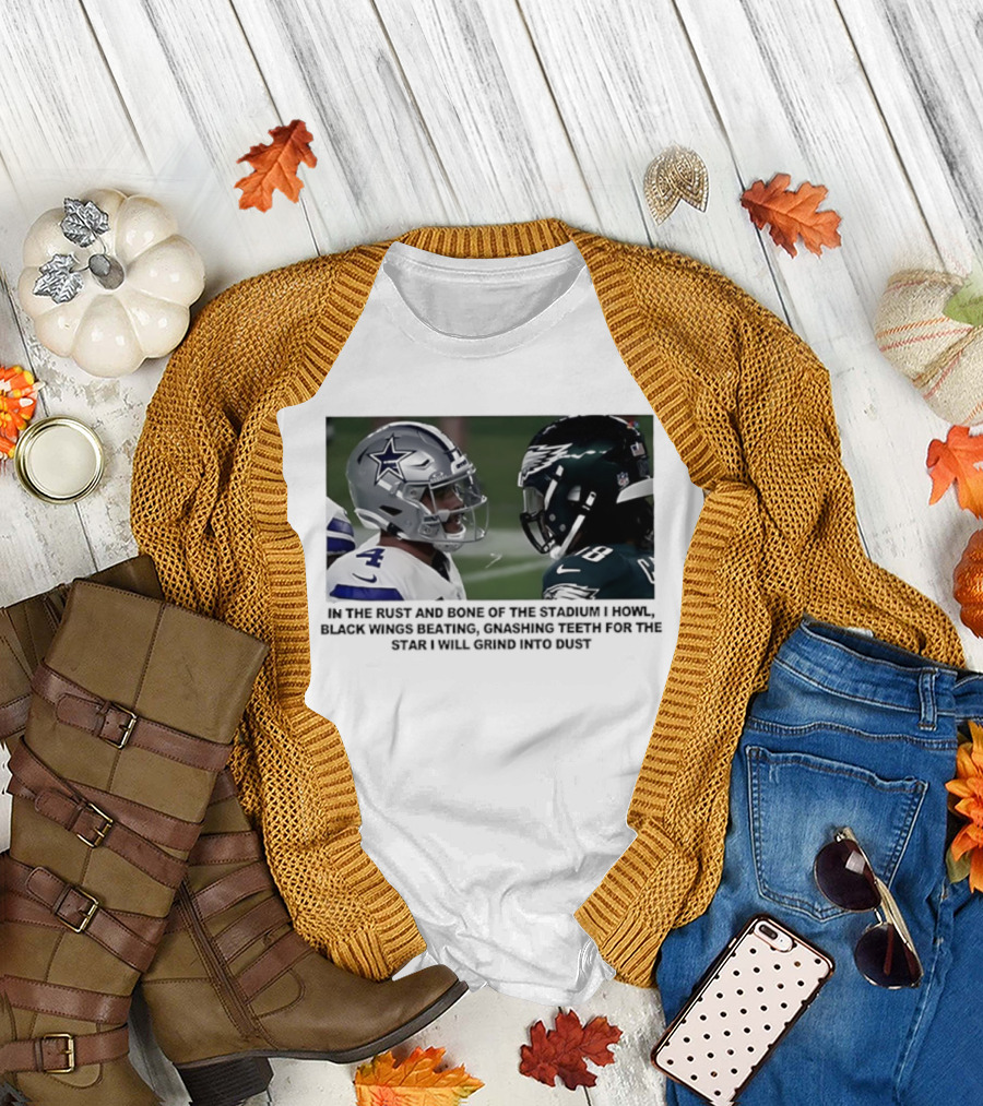 Philadelphia Eagles And Dallas Cowboys Black Wings Beat Fabric Grind Into Dust T-Shirt
