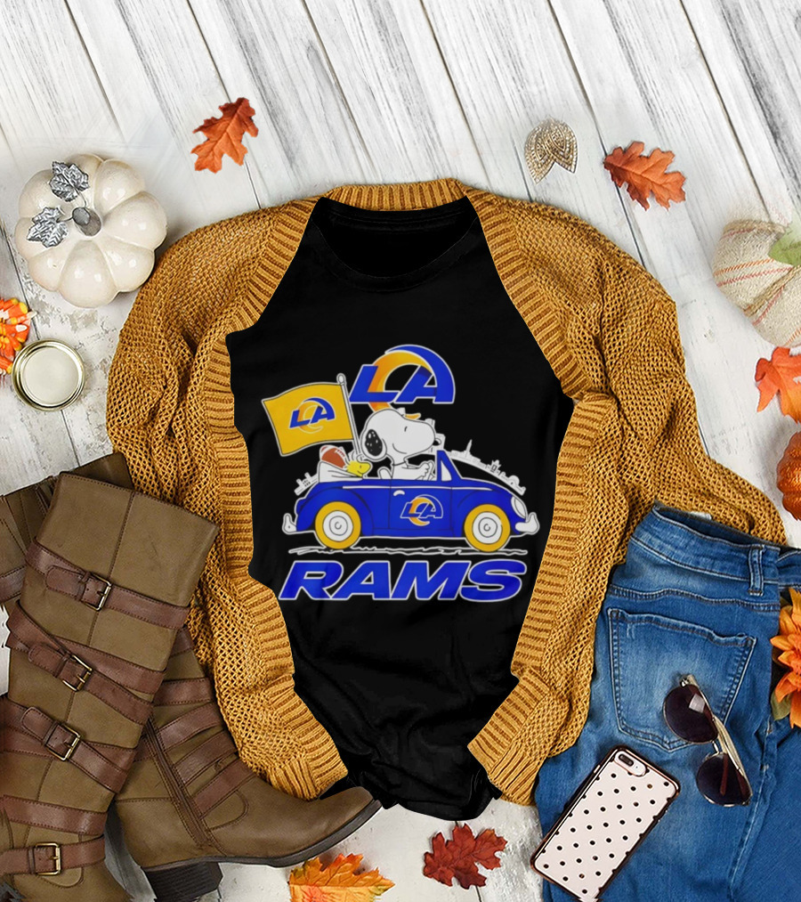 Los Angeles Rams Snoopy Woodstock Driving Car Football Fan Apparel T-Shirt