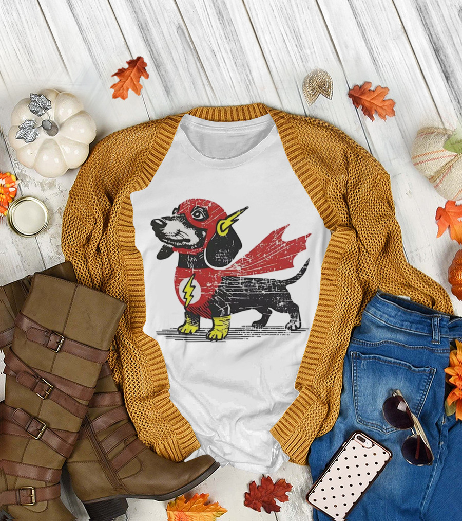 Dachshund Flash Superhero Costume Dog Cape Lightning Symbol T-Shirt