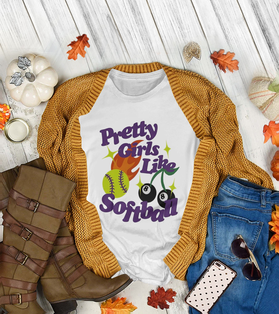 Pretty Girls Like Softball Flaming Ball And Billiard Cherry T-Shirt