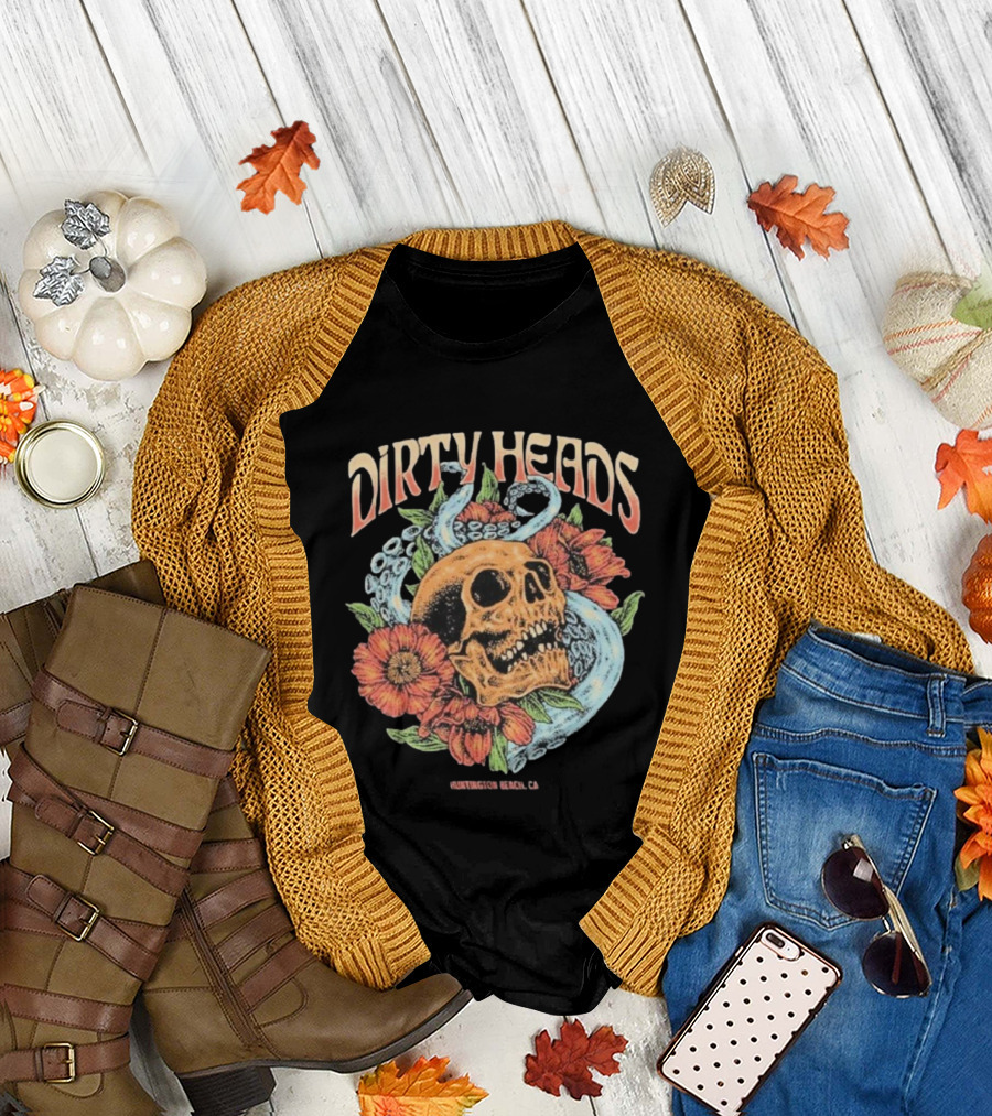 The Dirty Heads Huntington Beach CA Skull Octopus Floral T-shirt is designed for everyday wear and a consistent fit. Fabric is pre-shrunk ring-spun cotton with durable stitching. See the size chart below for exact measurements.