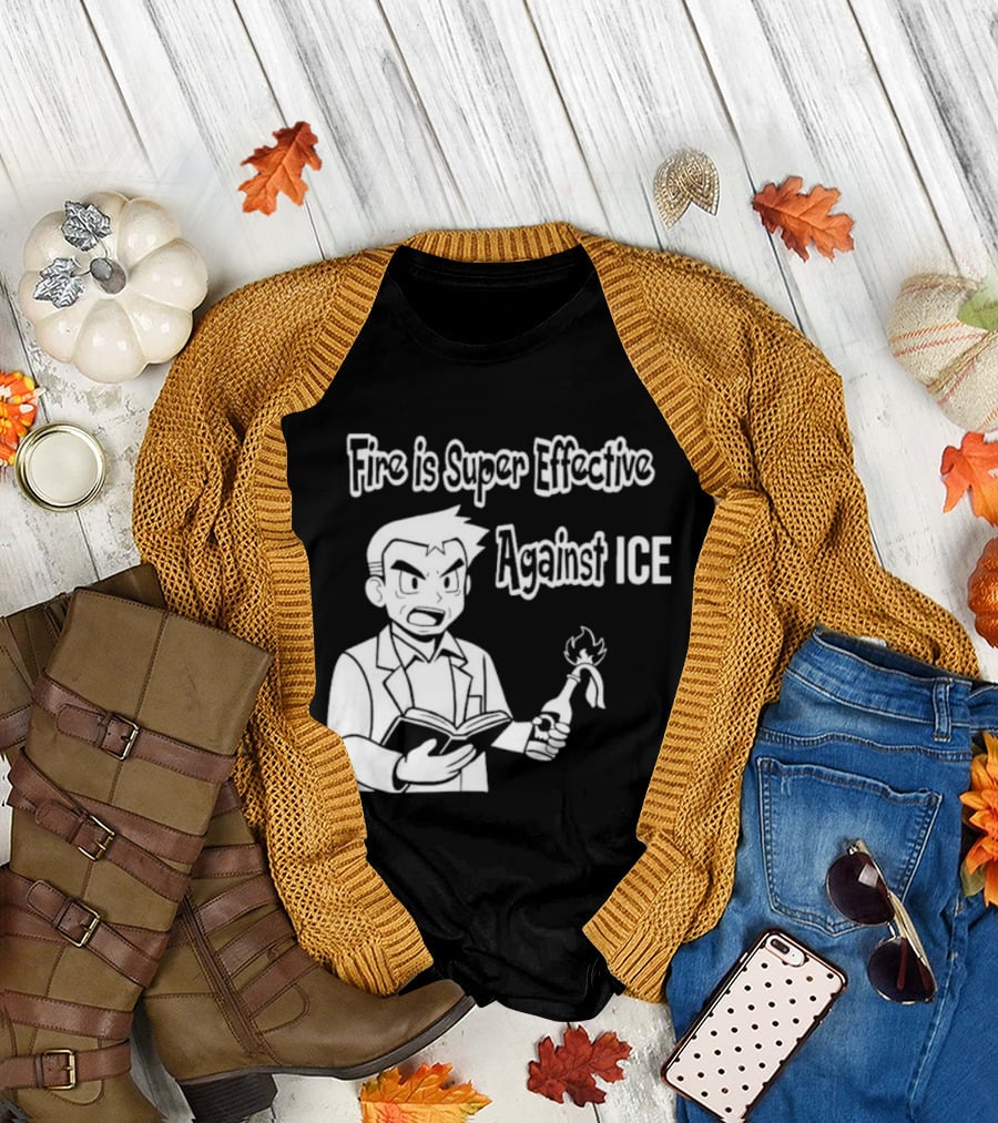 Fire Is Super Effective Against Ice Pokémon Oak Character Holding Flaming Stick T-Shirt