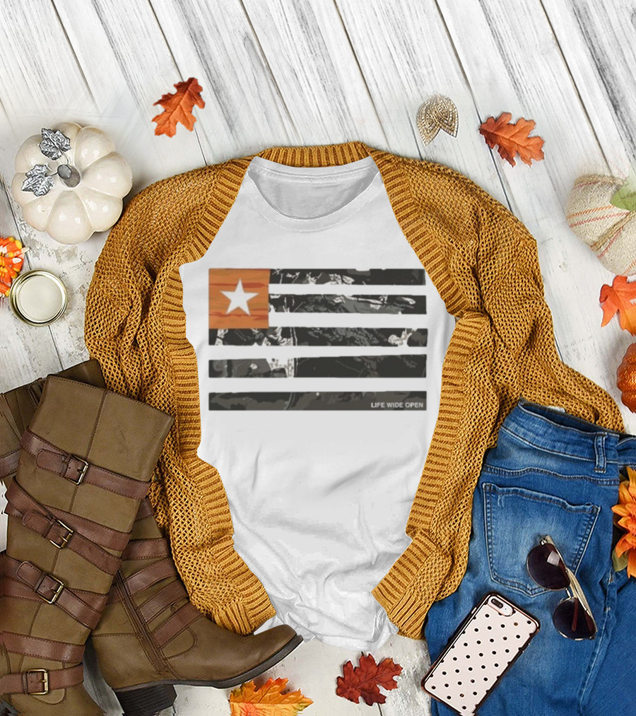 Life Wide Open American Flag Star Rustic Outdoors T-Shirt