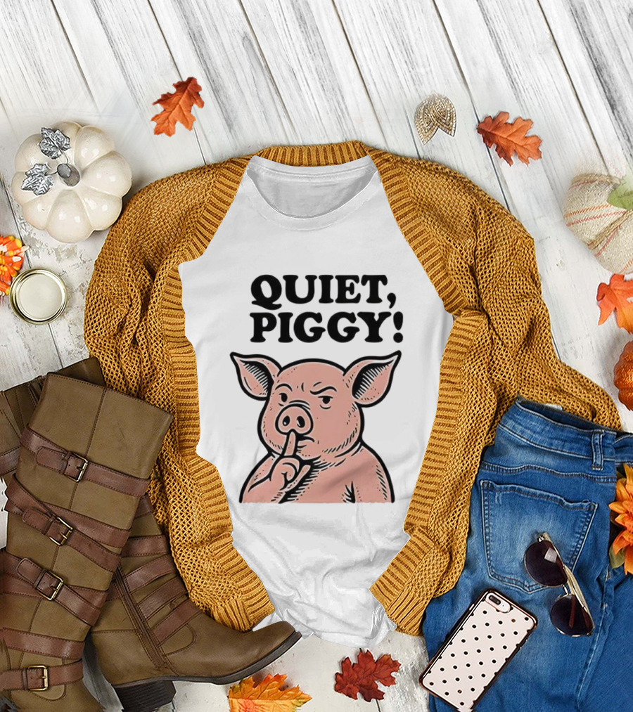 Quiet Piggy Satirical Trump Shushing Pig Illustration T-Shirt