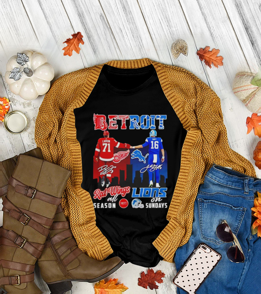 Detroit Sports Red Wings Lions Larkin Goff Signatures T-Shirt