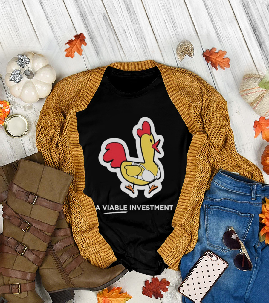 The South Park A Viable Investment Chicken T-shirt is designed for everyday wear and a consistent fit. Fabric is pre-shrunk ring-spun cotton with durable stitching. See the size chart below for exact measurements.
