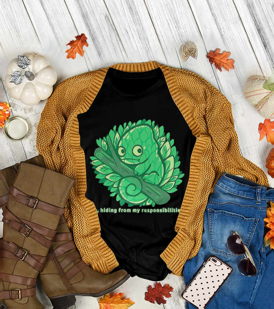 Me Hiding From My Responsibilities Chameleon Leaf Branch Camouflage T-Shirt