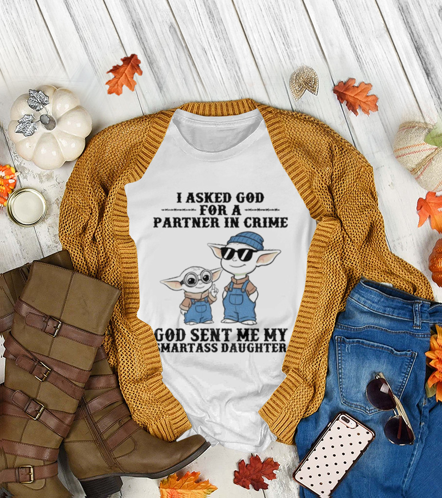 Baby Yoda I Asked God For A Partner In Crime God Sent Me My Smartass Daughter T-Shirt