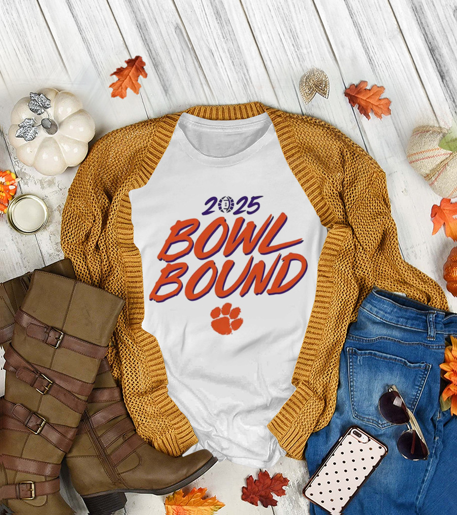 Clemson Tigers 2025 Bowl Bound Football Paw Logo T-Shirt
