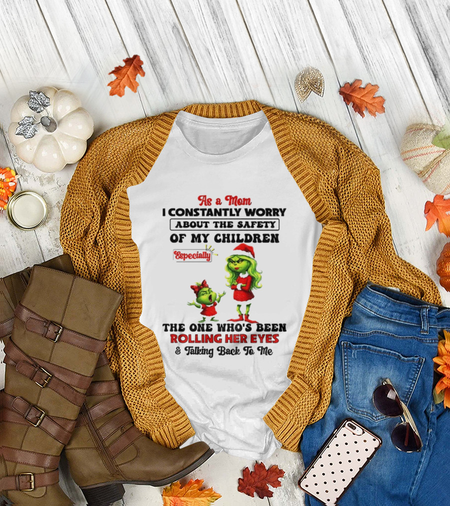 Grinch Santa As A Mom Worry About Safety Especially Rolling Her Eyes Talking Back T-Shirt