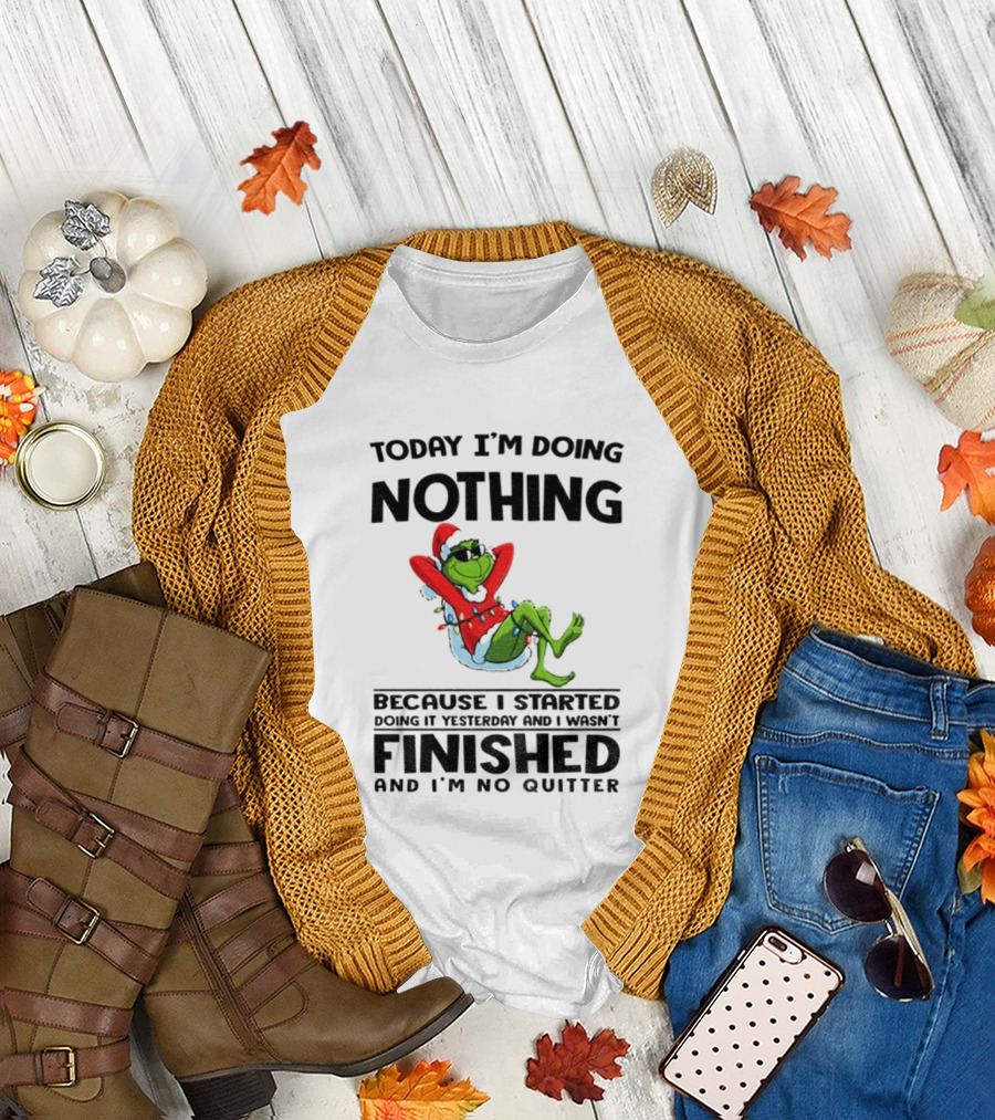 Grinch Santa Doing Nothing Finished No Quitter Merry Christmas T-Shirt