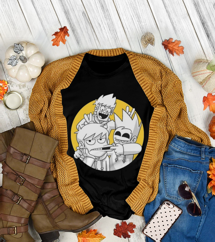 Eddsworld Edd Gang Character Group Yellow Circle Background T-Shirt
