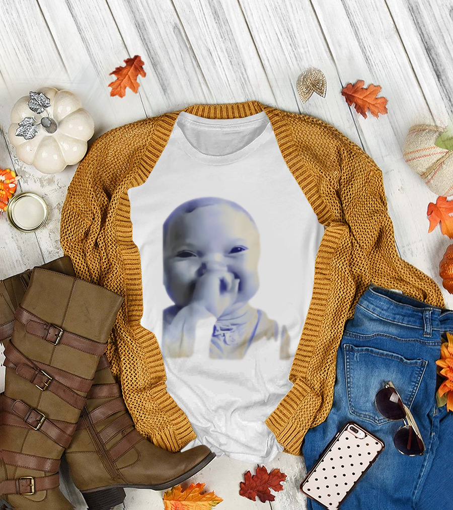 AI Baby Holding Laugh Meme Blue Tones T-Shirt