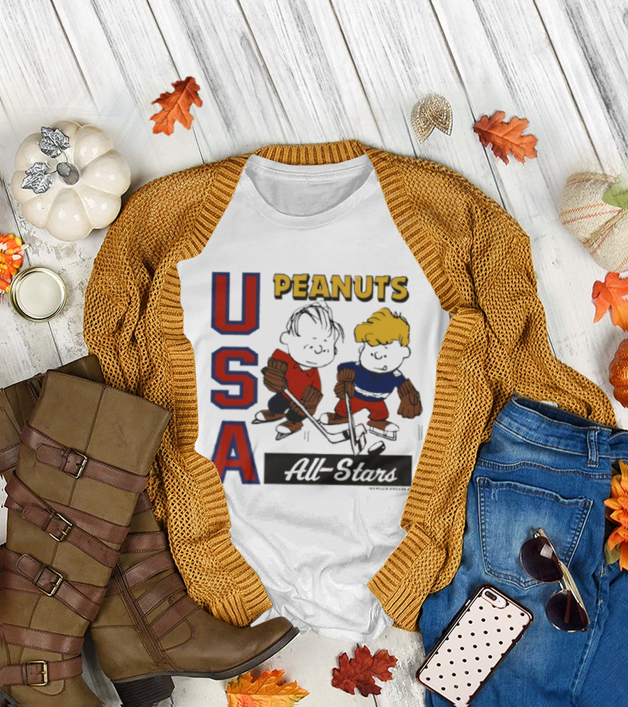 Peanuts USA All Stars Hockey Image With Charles M. Schulz Characters T-Shirt