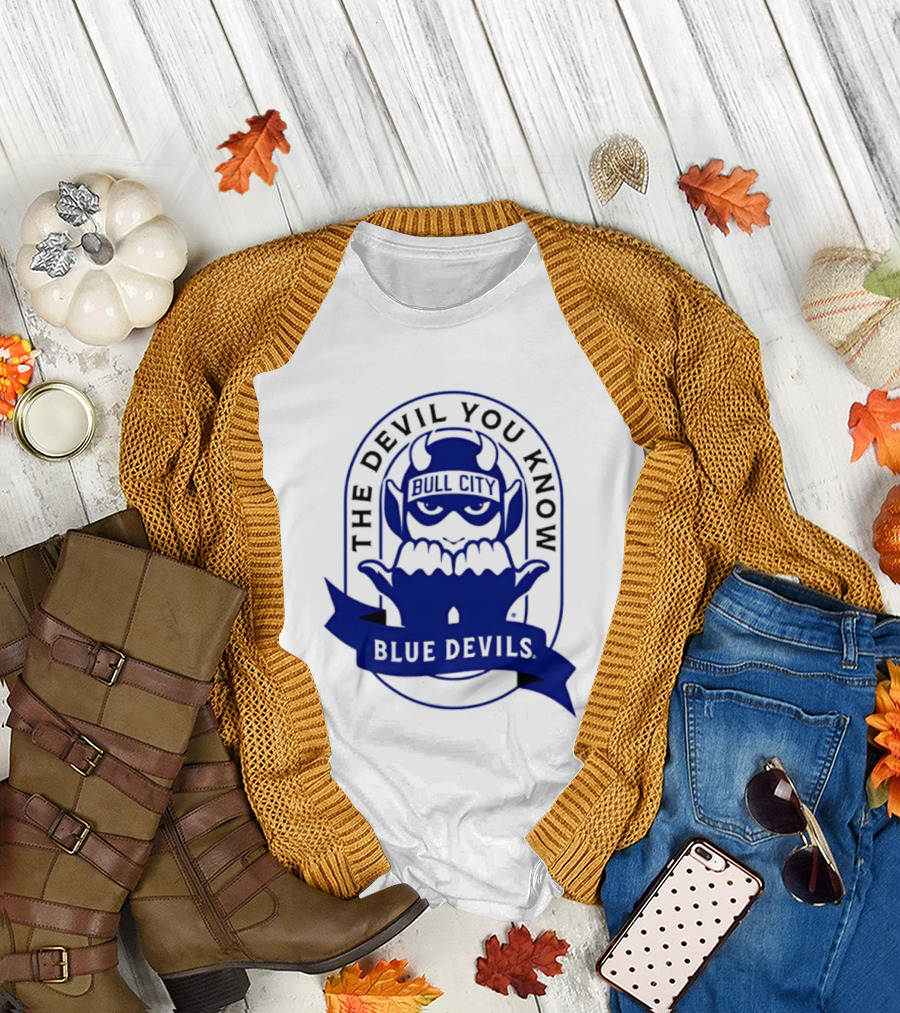 The Bull City Blue Devils The Devil You Know T-shirt is designed for everyday wear and a consistent fit. Fabric is pre-shrunk ring-spun cotton with durable stitching. See the size chart below for exact measurements.