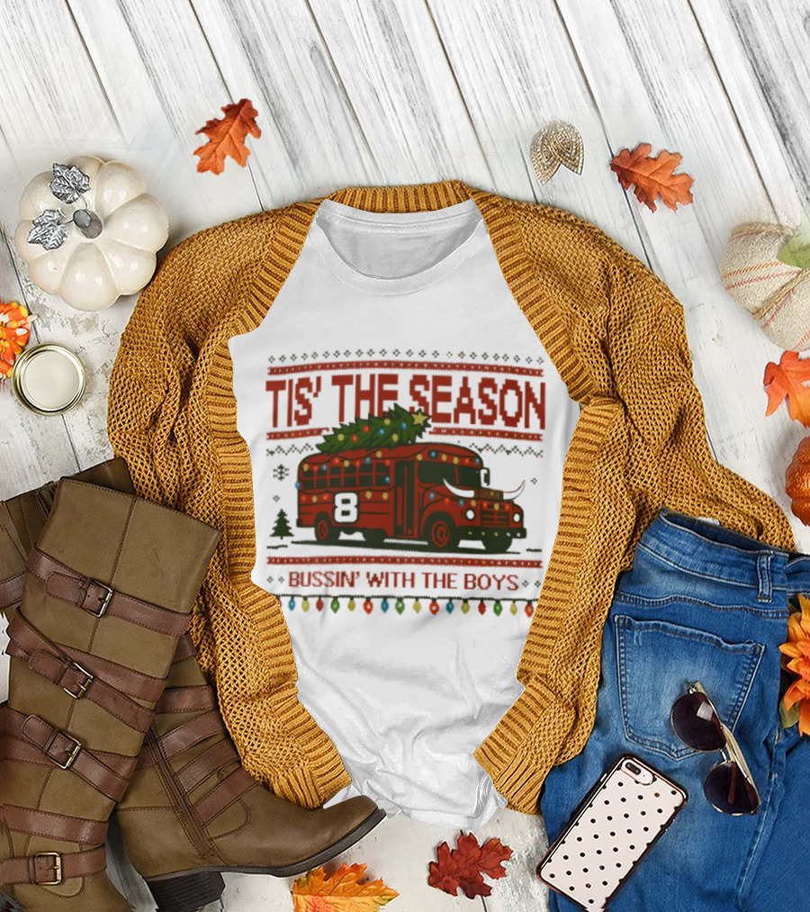 Tis The Season Festive Bus Bussin’ With The Boys Holiday Lights T-Shirt