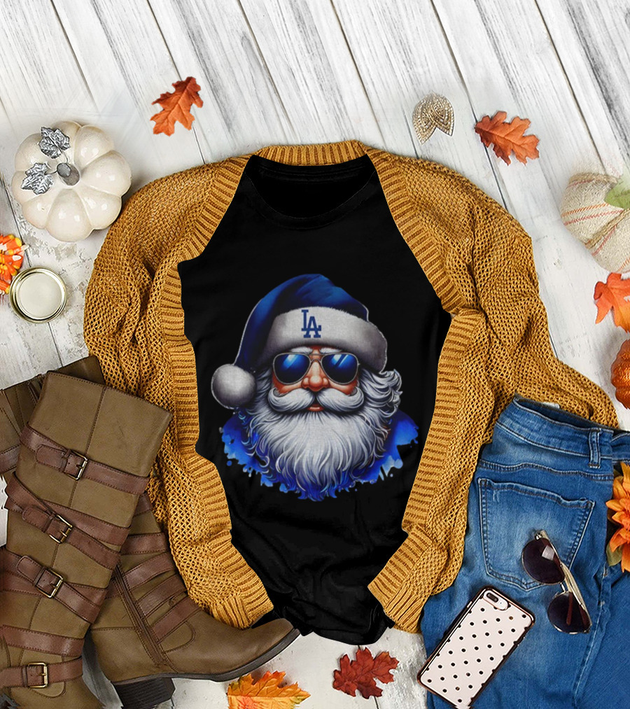 Santa Claus Big Face LA Dodgers MLB Baseball Christmas 2025 T-Shirt