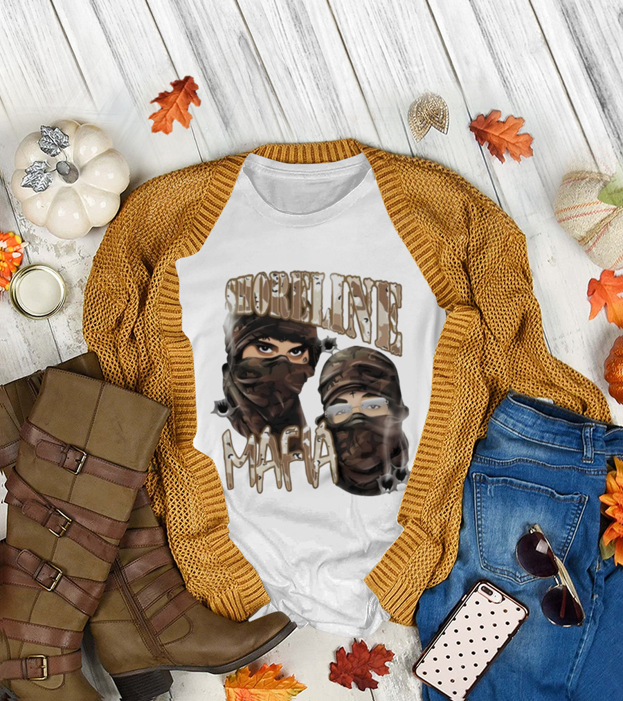The Shoreline Mafia Camo Masked Illustration T-shirt is designed for everyday wear and a consistent fit. Fabric is pre-shrunk ring-spun cotton with durable stitching. See the size chart below for exact measurements.