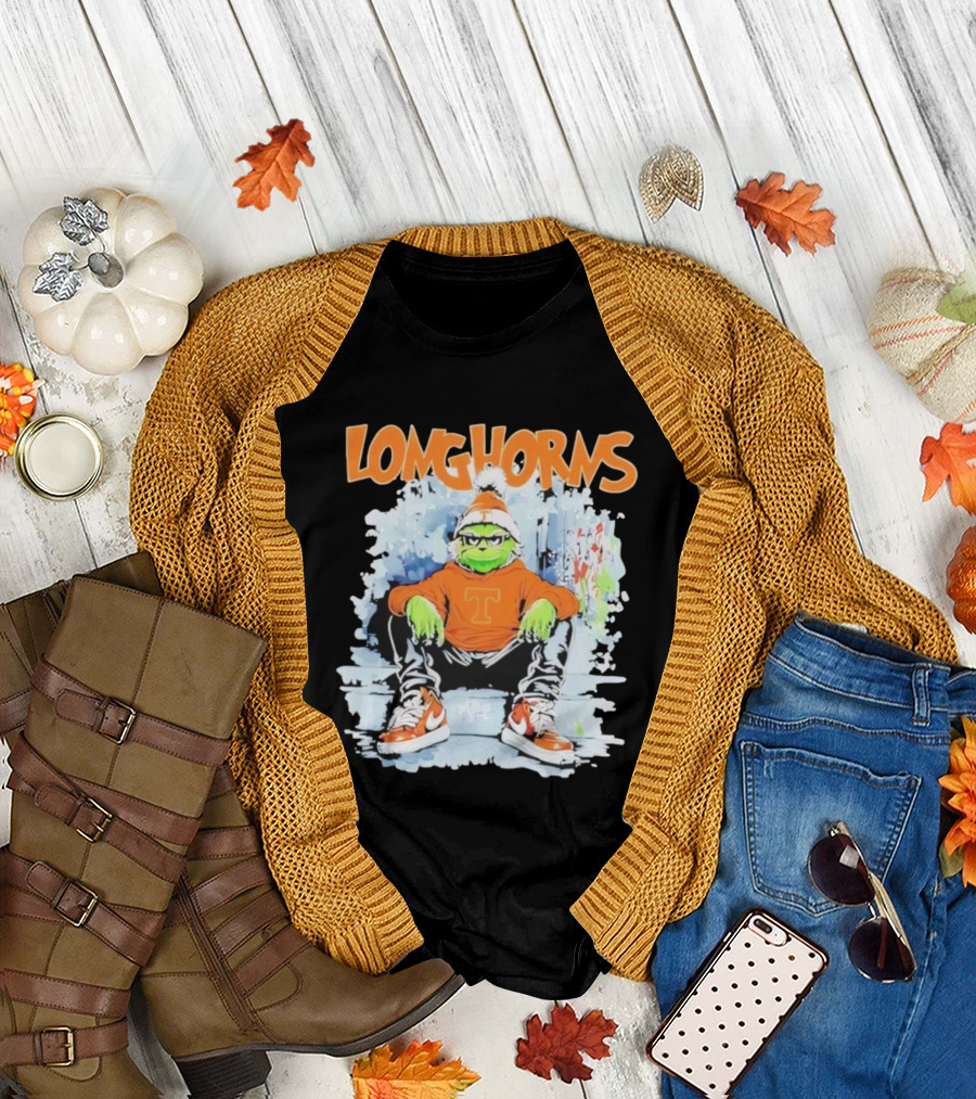 Texas Longhorns Christmas 2025 Grinch Sitting On Steps T-Shirt