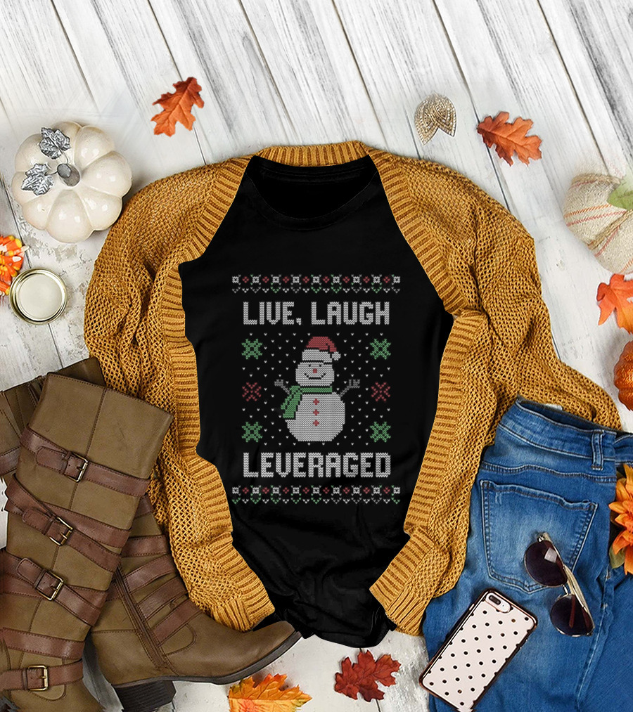 Snowman Live Laugh Leveraged Ugly Christmas Sarcastic Holiday Humor T-Shirt