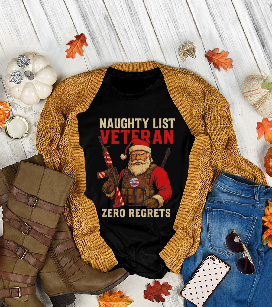 Naughty List Veteran Santa Tactical Zero Regrets T-Shirt