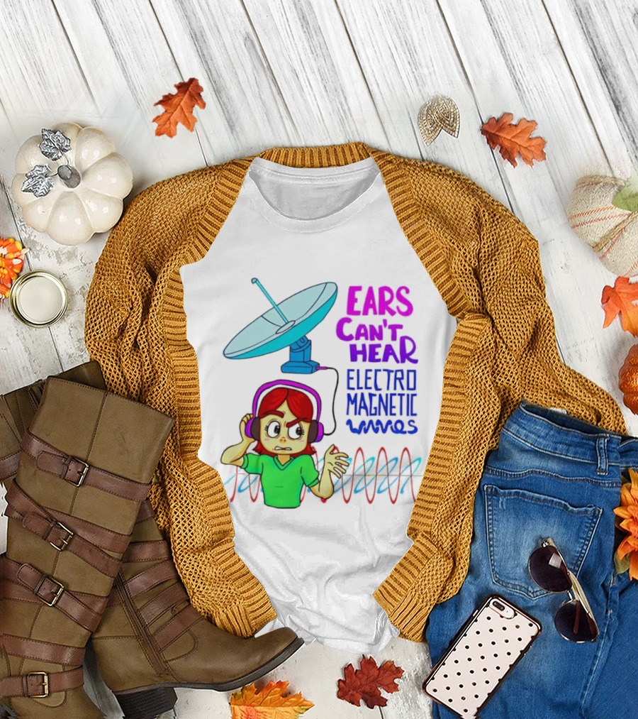 Ears Can’t Hear Electro Magnetic Waves Cartoon Headphones Dish Antenna T-Shirt