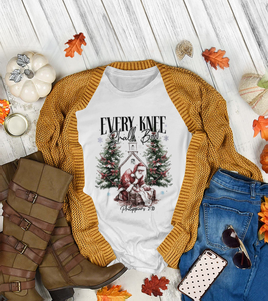 Every Knee Shall Bow Philippians 2:10 Santa Claus Christmas Trees T-Shirt