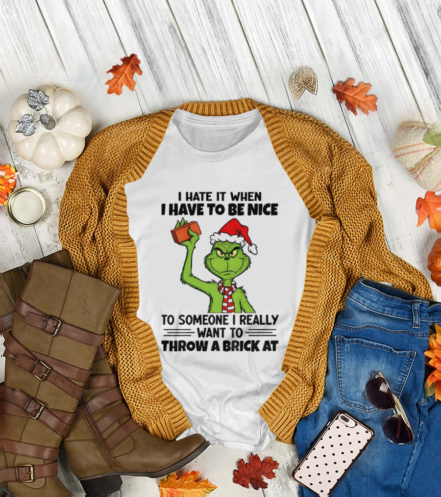 Grinch Santa Hat I Hate It When I Have To Be Nice To Someone Christmas Brick T-Shirt