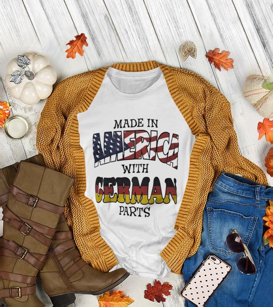 The Made in America with German Parts USA Flag Stars Stripes German Flag Colors T-shirt is designed for everyday wear and a consistent fit. Fabric is pre-shrunk ring-spun cotton with durable stitching. See the size chart below for exact measurements.