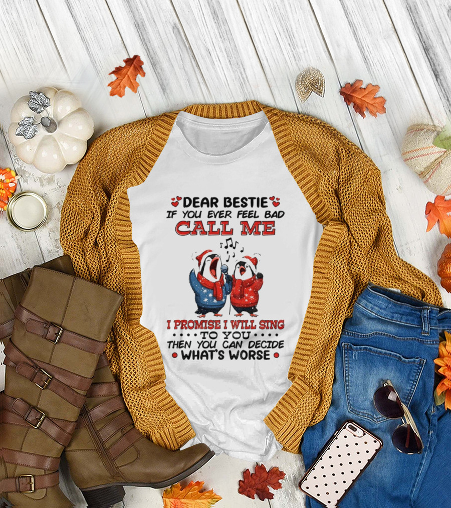 Penguin Dear Bestie Call Me I Promise I Will Sing Christmas Fun T-Shirt